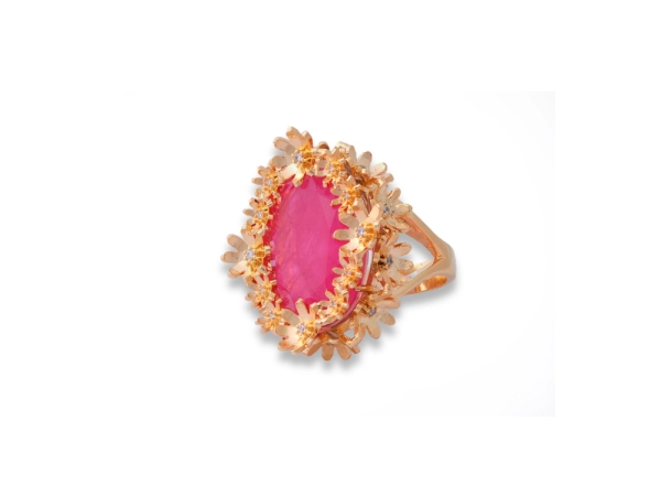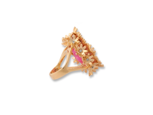 Deixe o Anel Dourado Luxo Ramo de Flores Fusion Rosa Pink Oval ser a expressão do seu estilo único. Celebre a mulher que você é, exalte a sua beleza interior e exterior. Adquira esta peça exuberante agora e transforme cada momento em uma ocasião especial. Sinta a magia das flores desabrochando em cada detalhe deste magnífico anel.